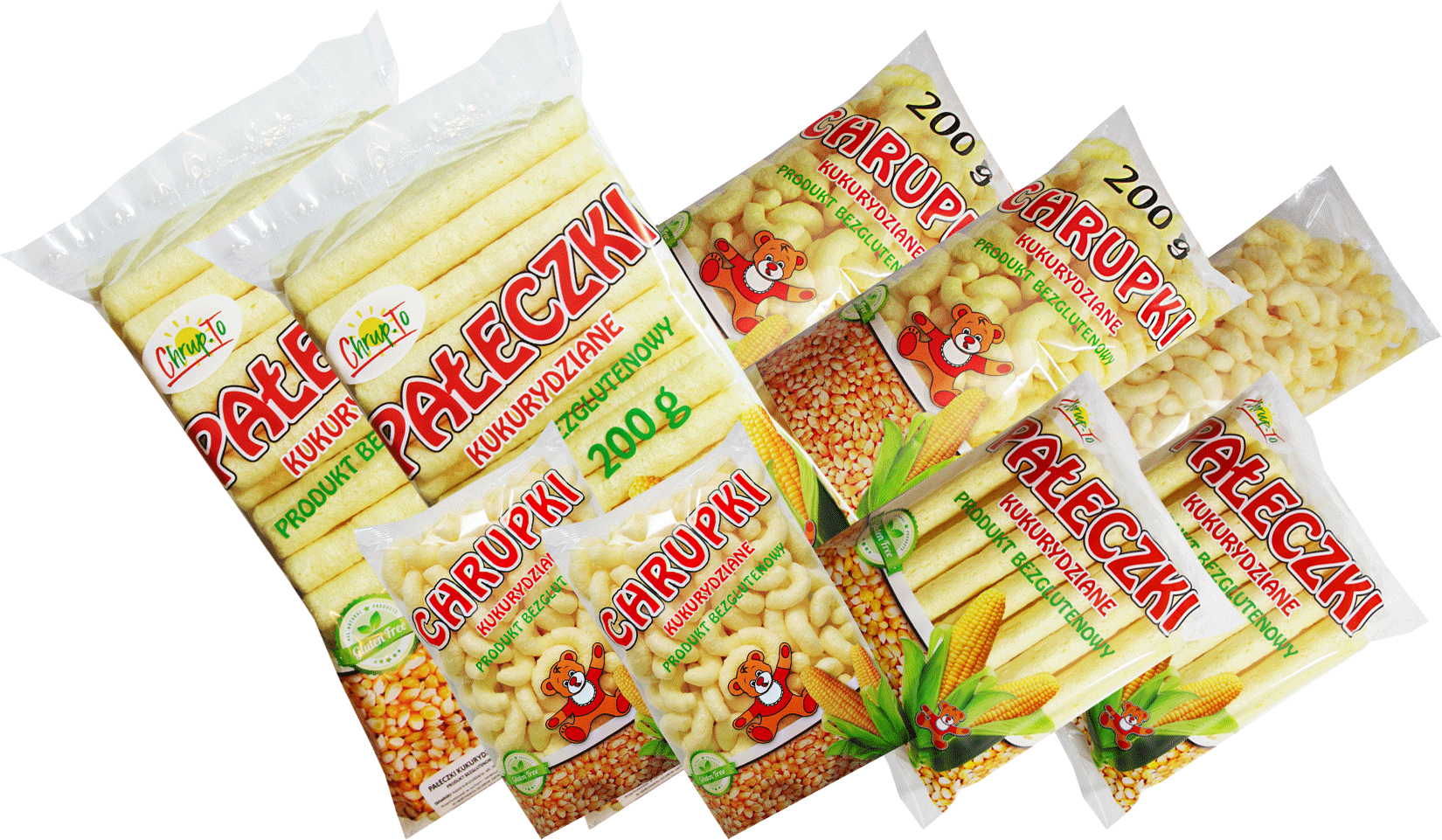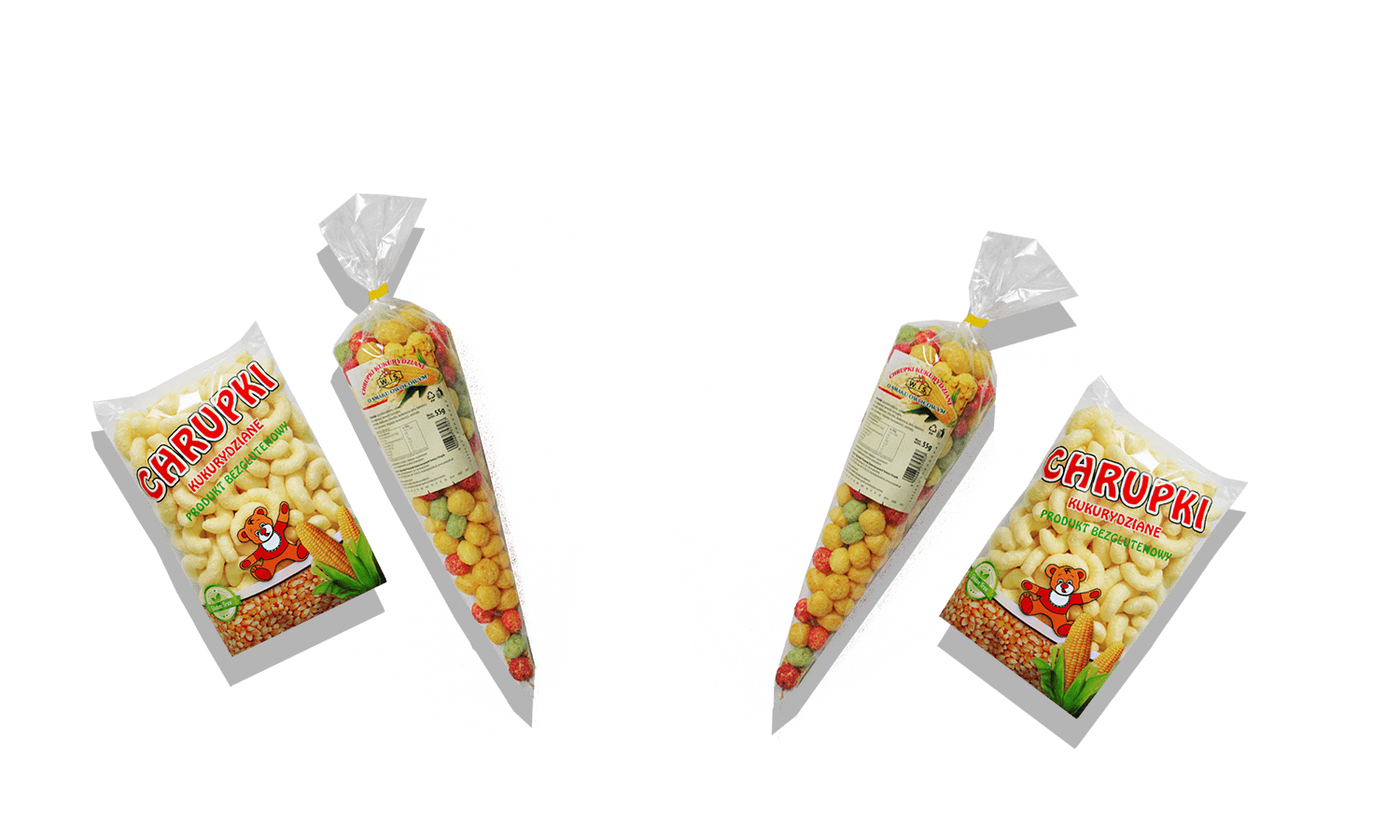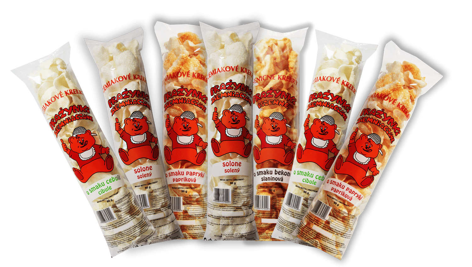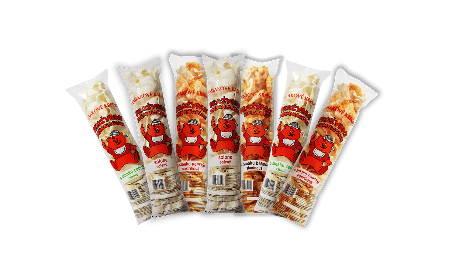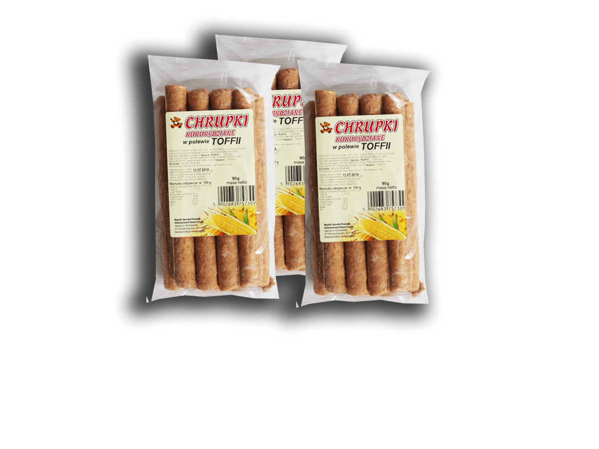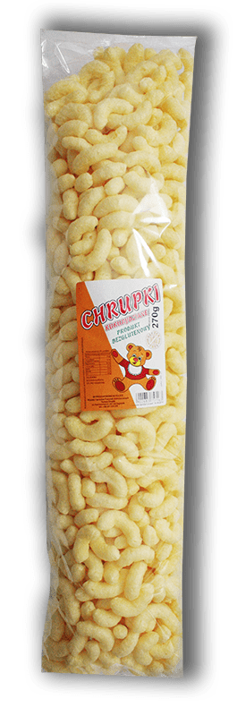 Zainteresowanym nasza ofertą Klientom proponujemy prażynki ziemniaczane i chrupki kukurydziane w różnych gramaturach opakowań od małych paczek (35 gram) poprzez średnie (90 gram) do dużych opakowań o gramaturze 330 gram. Dodatkowo posiadamy możliwość pakowania naszych produktów w opakowania według projektu zamawiającego.