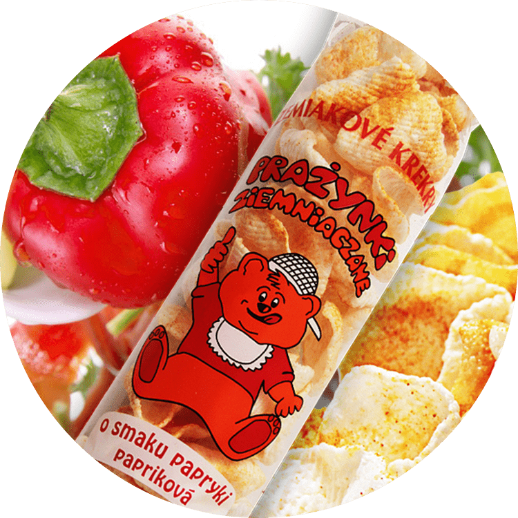 Zaczynaliśmy od prażynek ziemniaczanych w jednym kształcie i jednym smaku - obecnie, oferujemy kilka różnych kształtów oraz kilkanaście smaków prażynek oraz chrupek kukurydzianych.